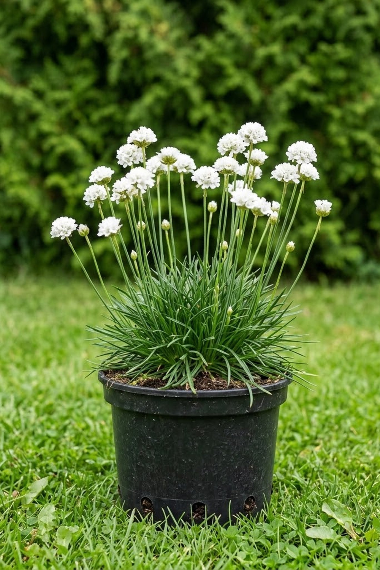 - белые цветы на коротких прочных стебельках,цветет июнь- август