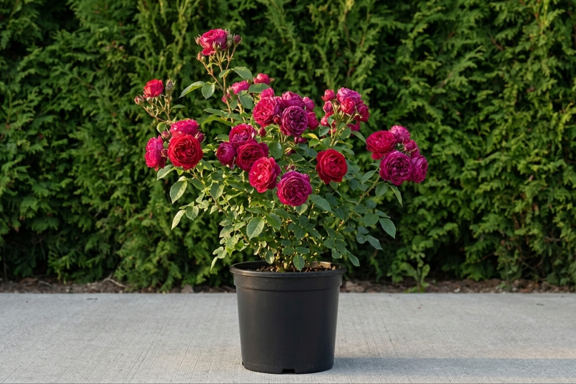 - роза с ностальгическими шаровидными густомахровыми цветками. Цветки пурпурно-фиолетовые, медленно распускаются. Цветки диаметром 10-12 см, повторноцветущая